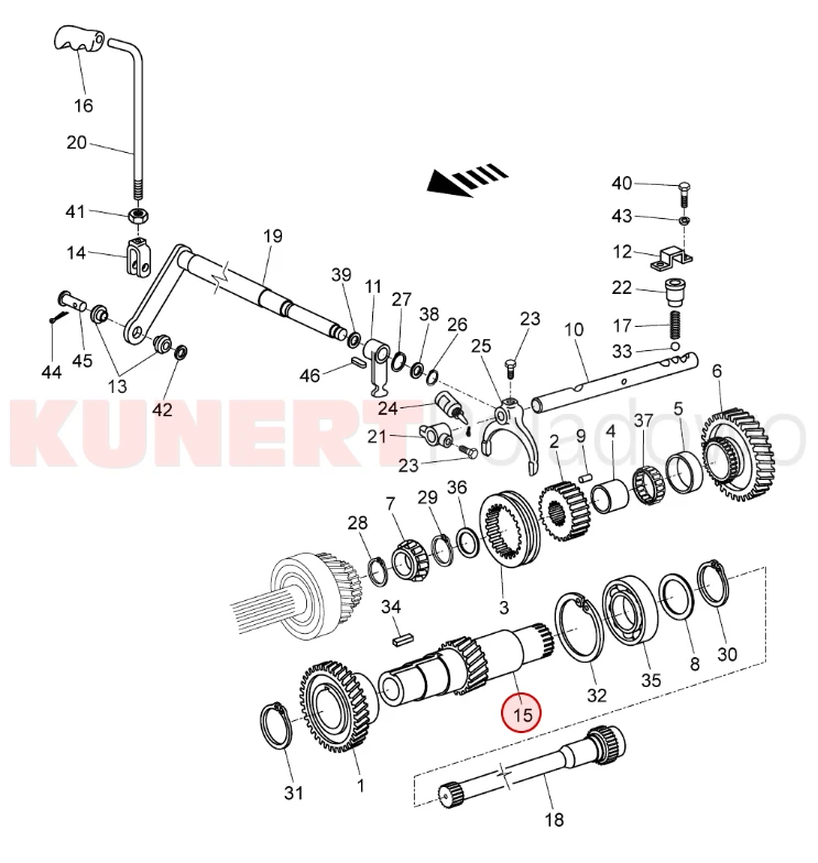 Wałek kompletny skrzyni biegów (przekładnia redukcji) 17 zębów ZETOR FORTERRA 11741 / HSX